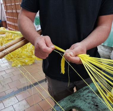 昔から変わらず、伝統的な職人の手作業で行われており、最後の段階で織機が使用されるだけです。
