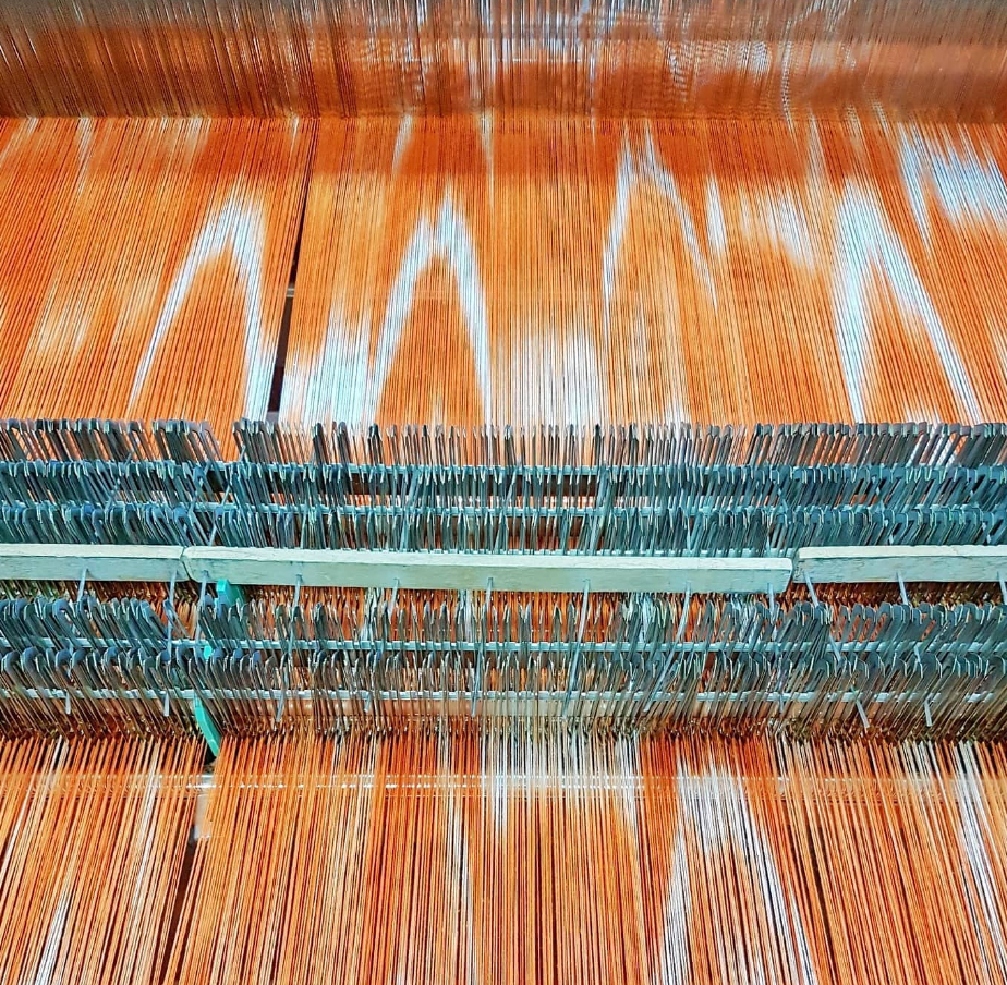その後、生地を織機に運び、平織りでリネンの形を作ります。